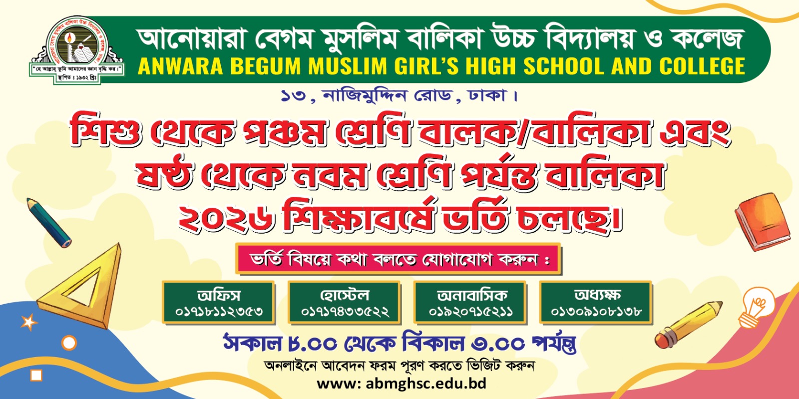 2 01-Dec-2025 শিশু থেকে পঞ্চম শ্রেণি বালক/বালিকা এবং ষষ্ঠ থেকে নবম শ্রেণি পর্যন্ত বালিকা ২০২৬ শিক্ষাবর্ষে ভর্তি চলছে।